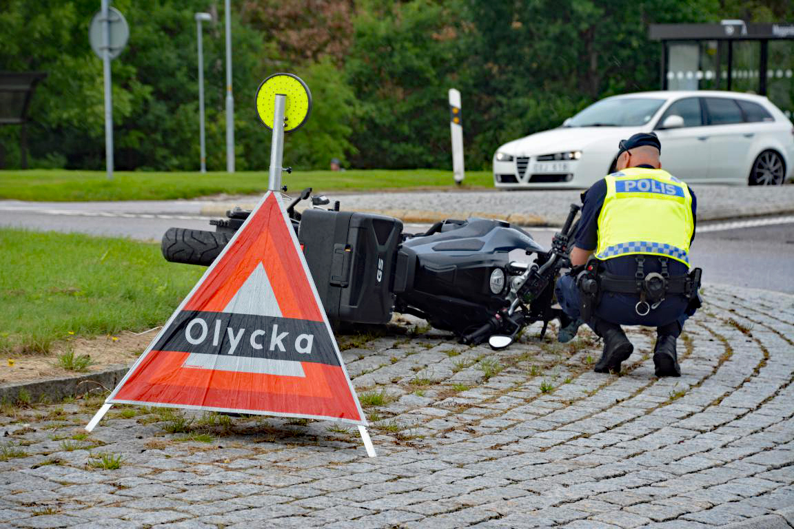 Vitten uppgav att man på länsväg 160, som är mycket trafikerad med semesterfirare just nu – möter en förarlös motorcykel. Motorcykeln, som har farthållare har efter olyckan fortsatt köra omkring 300 meter innan den kör in i en rondell, den blir liggandes.