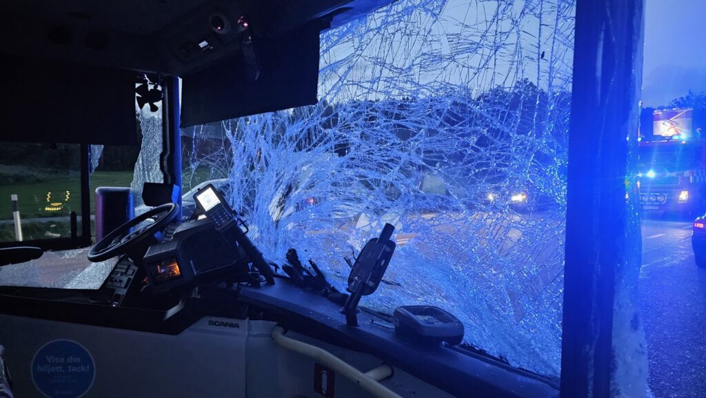 Det var vid klockan 06:15 som en helt ny buss i linjetrafik kolliderade med en älg på länsväg 169. Ombord på bussen fanns förutom chauffören två passagerare.