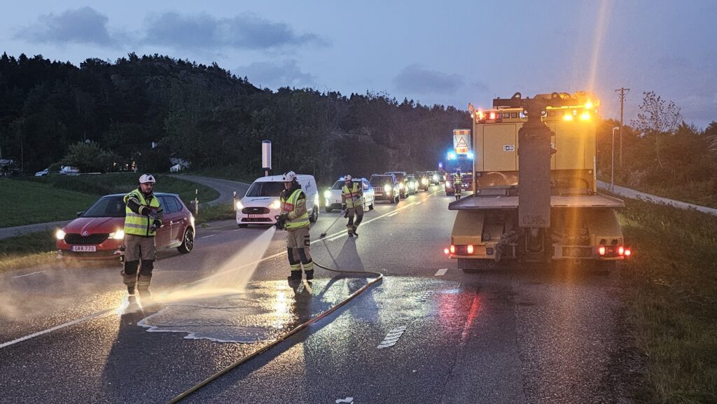 Räddningstjänst larmades senare ut för sanering av vägbanan. Efter kollisionen var det mycket glas på vägbanan.