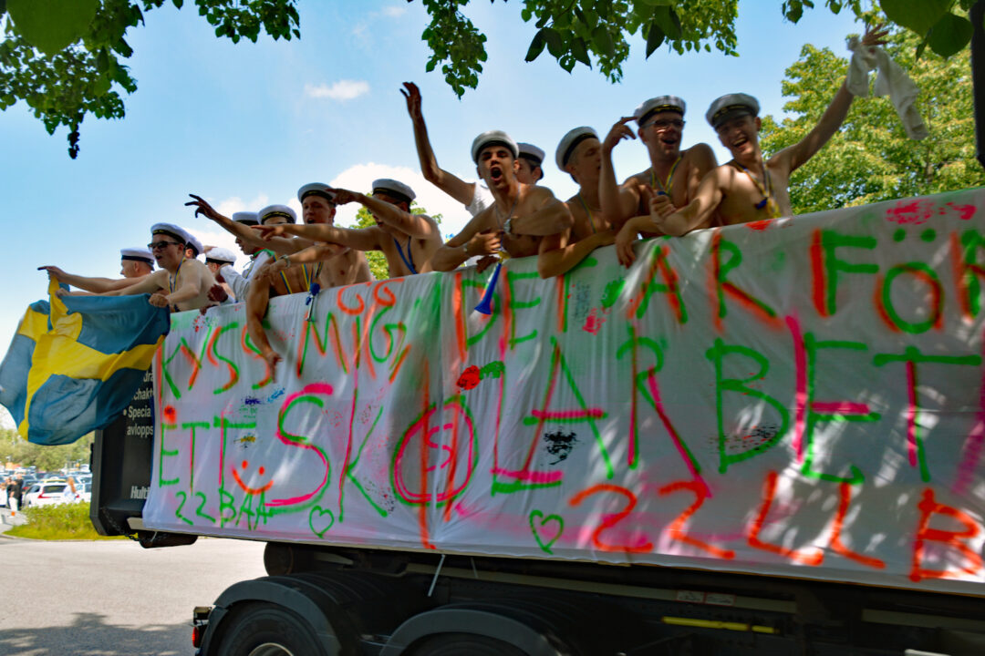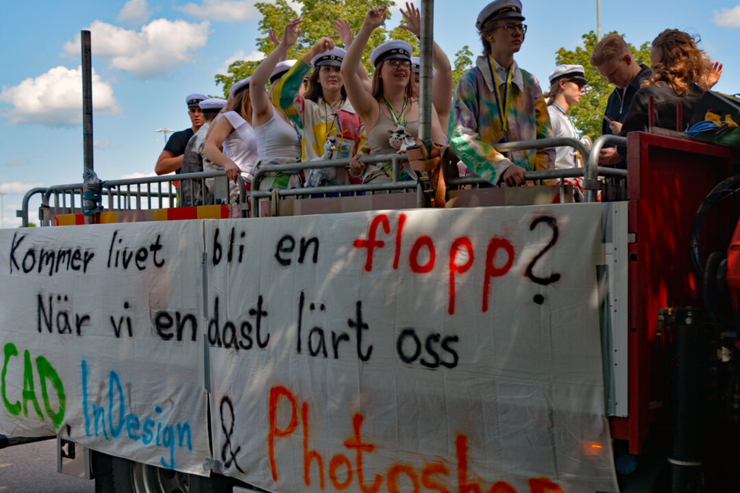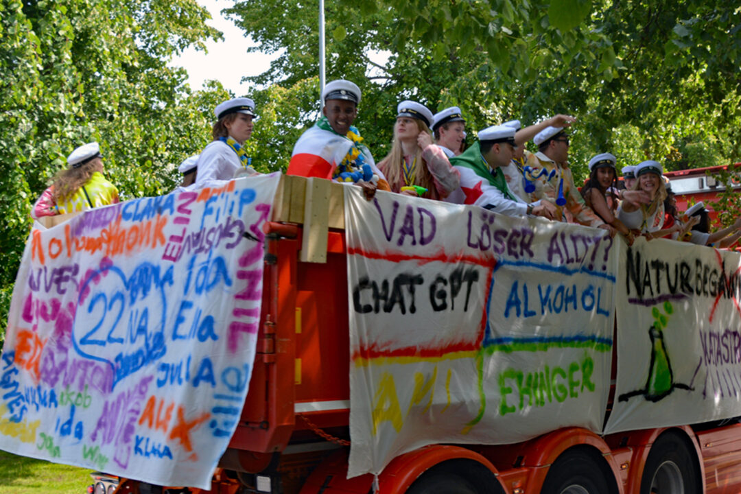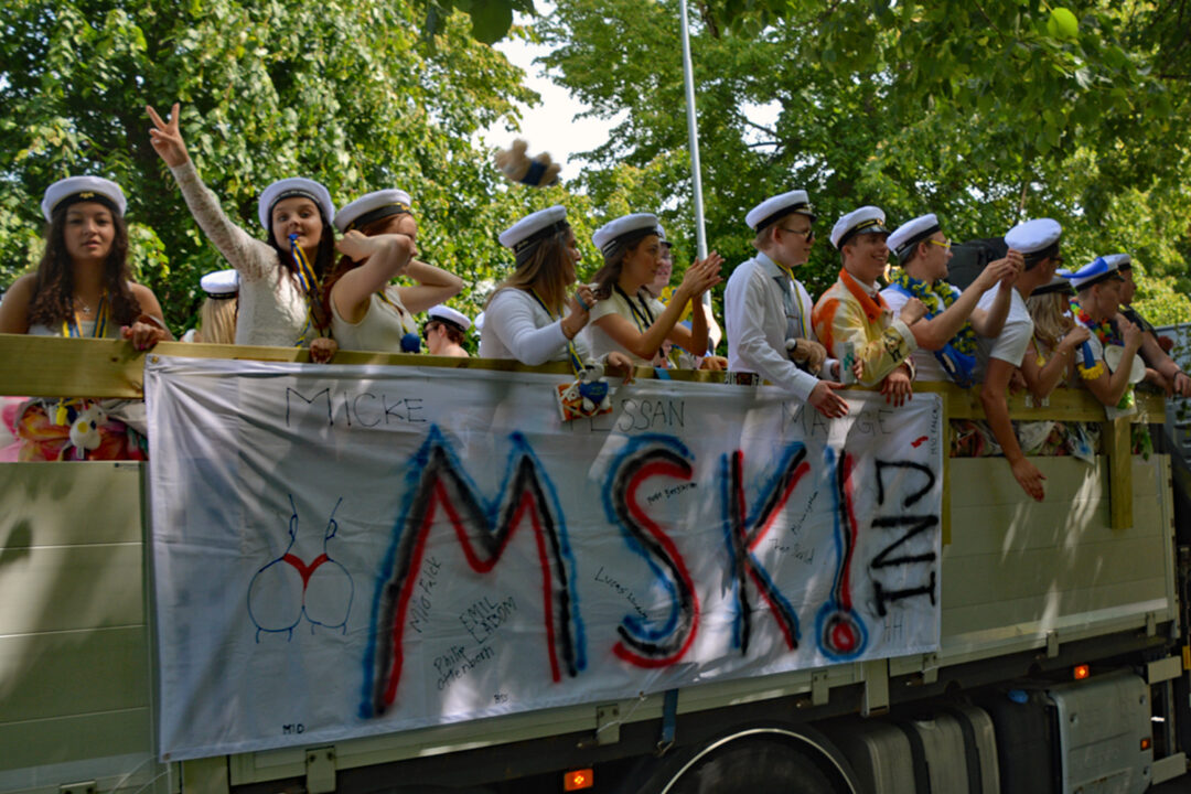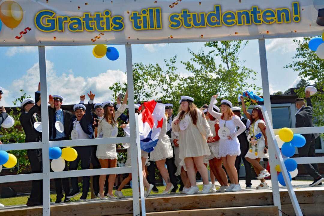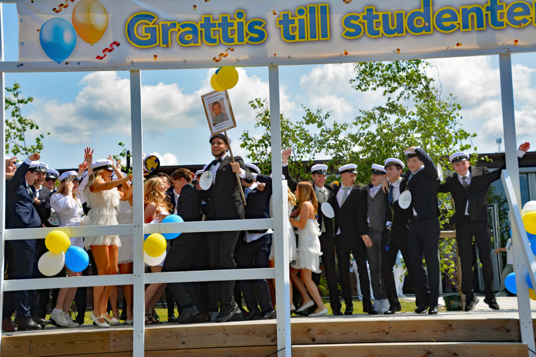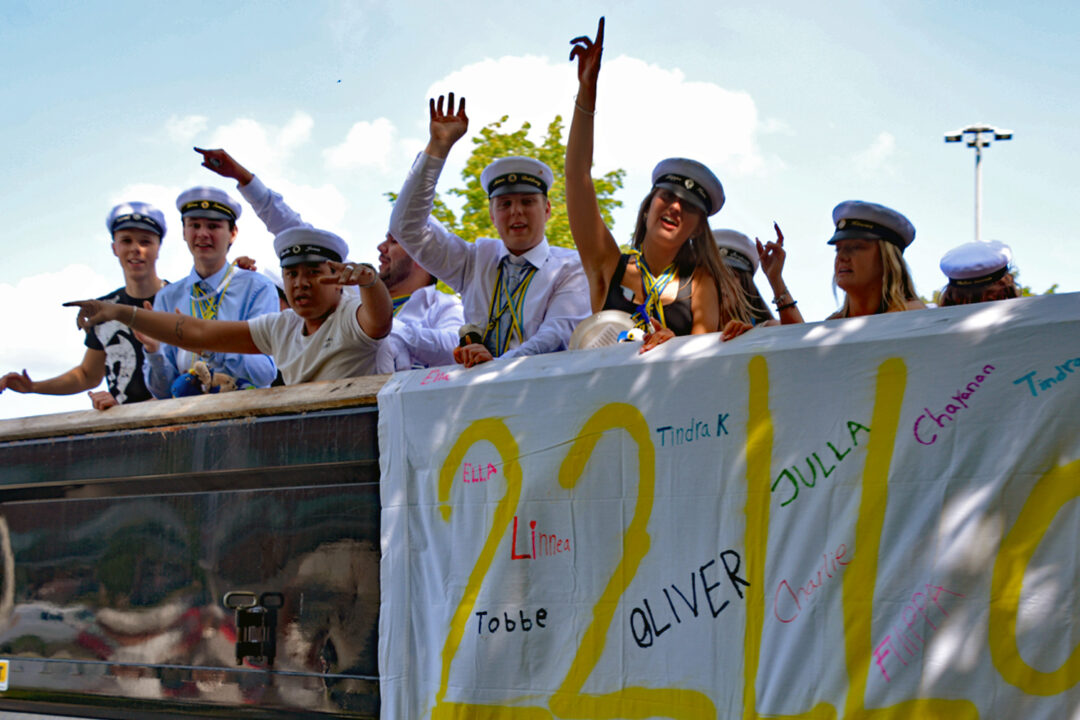Efter utspring väntar kortege med flak genom Stenungsund. NYHETERsto var på plats och och försökte fånga just dig som student och glädjen på bild.