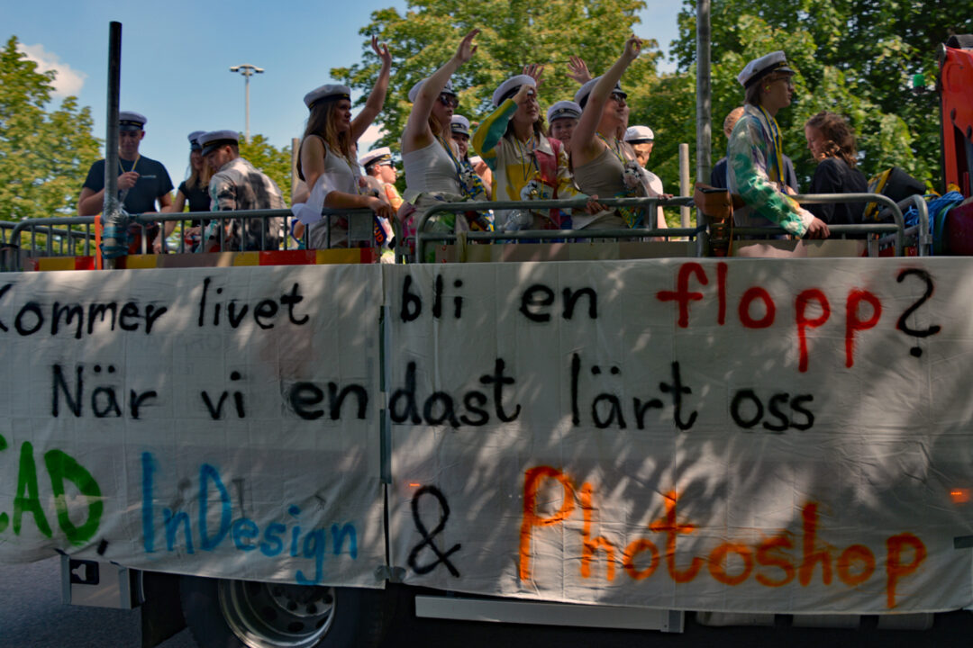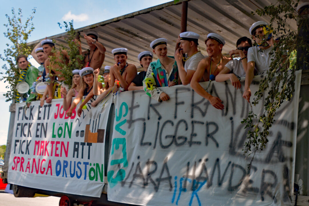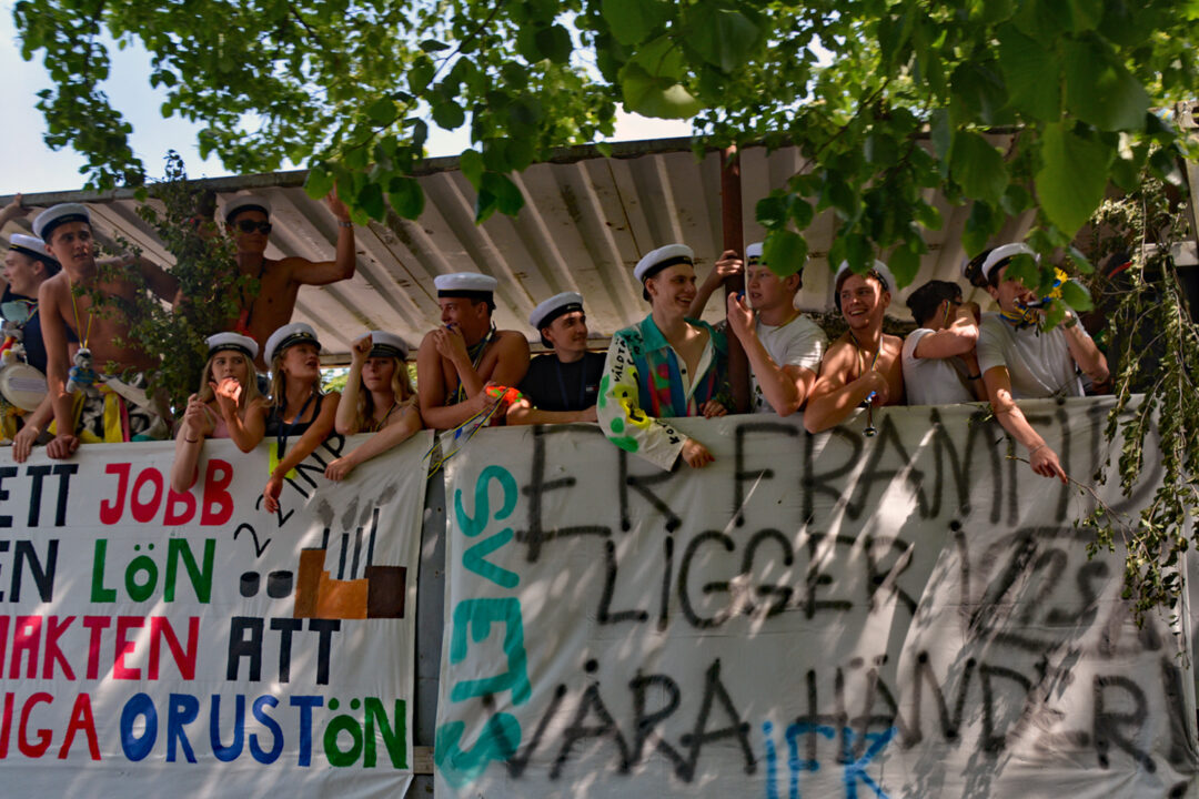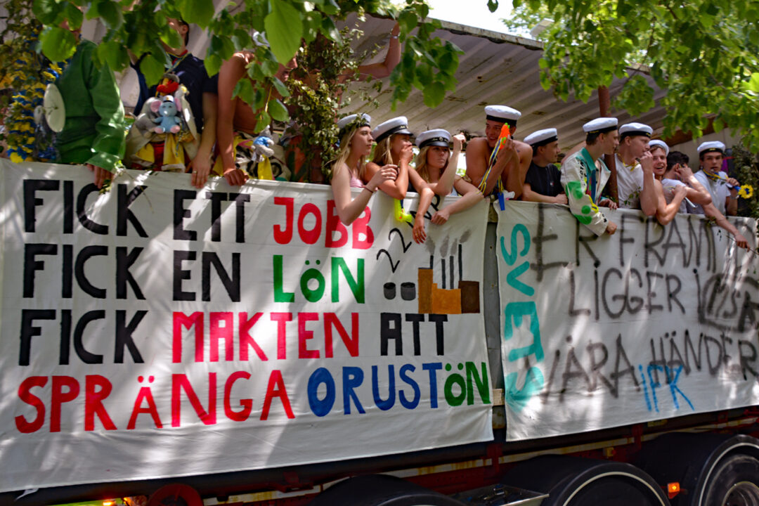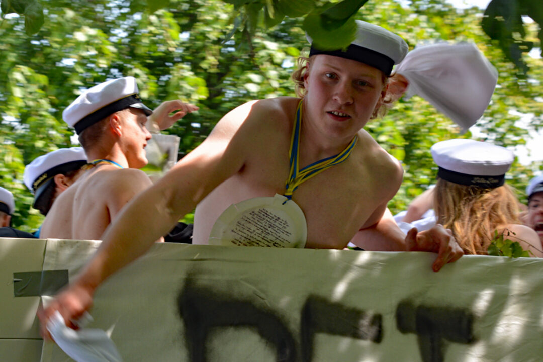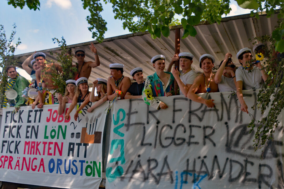 Efter utspring väntar kortege med flak genom Stenungsund. NYHETERsto var på plats och och försökte fånga just dig som student och glädjen på bild.
