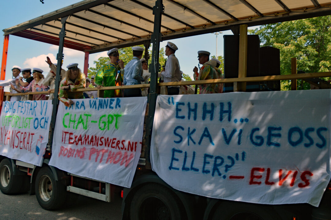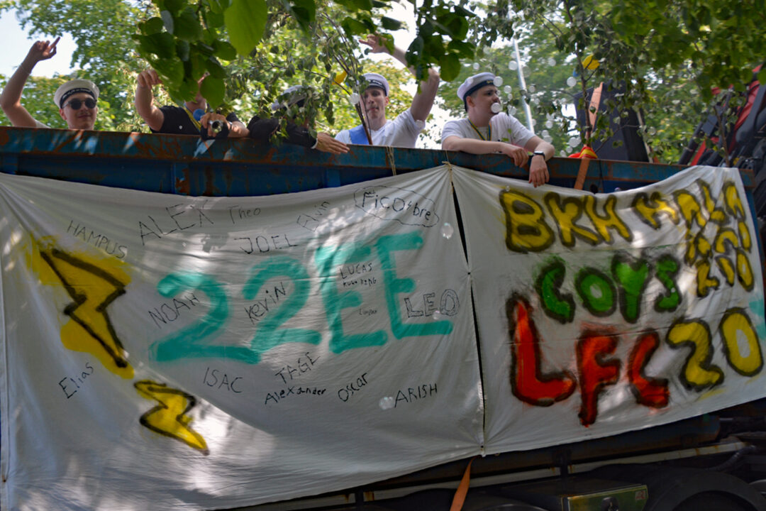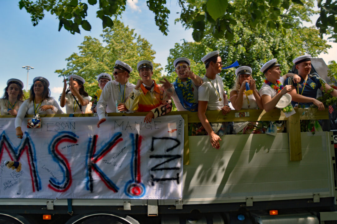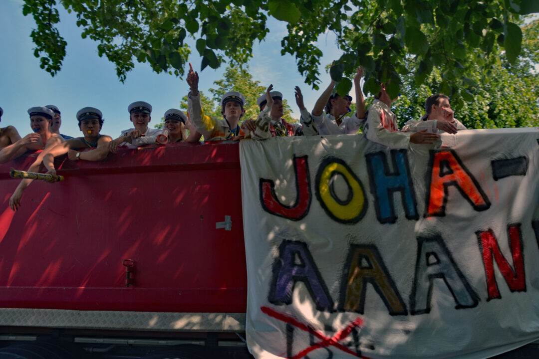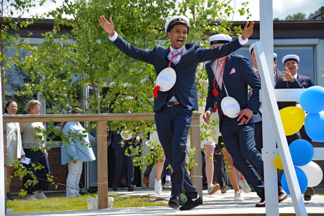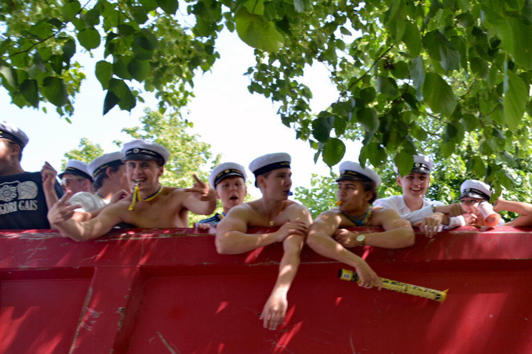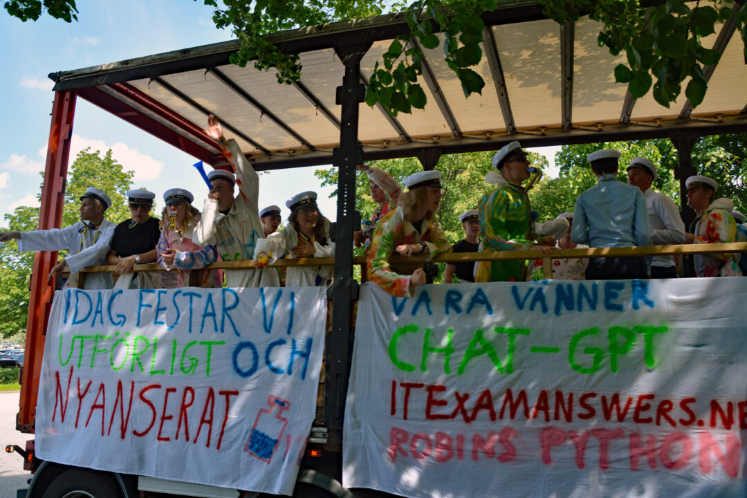 Efter utspring väntar kortege med flak genom Stenungsund. NYHETERsto var på plats och och försökte fånga just dig som student och glädjen på bild.