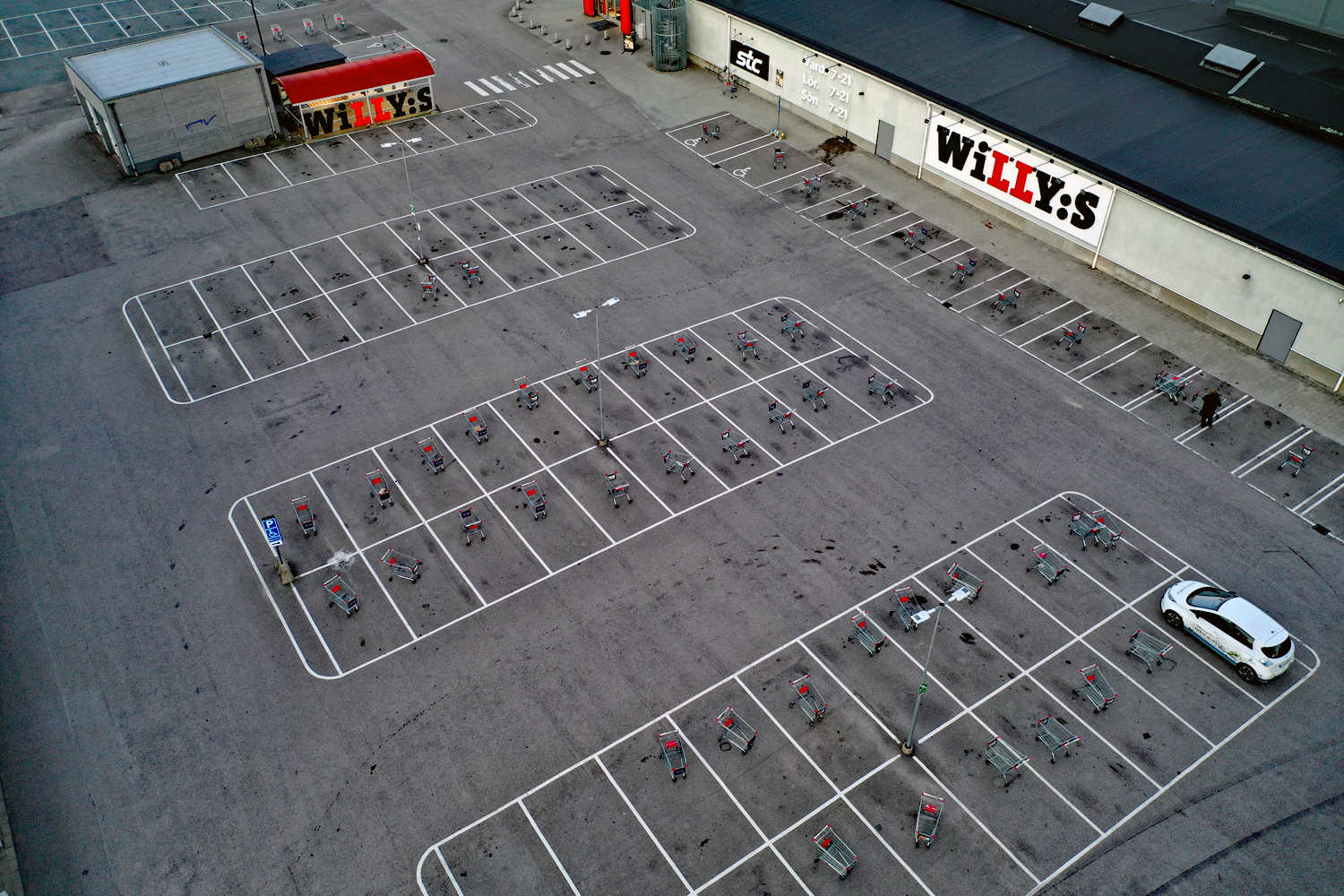 Senare kom tips om att även Willys i Stenungsund utsatts för kundvagnskupp under natten. När NYHETERsto kommer till platsen har det börjat ljusa och man håller som bäst på att samla in kundvagnarna.