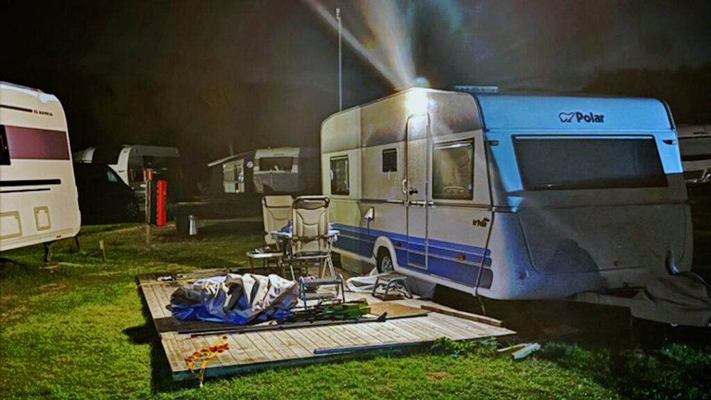 Vid tvåtiden ska det ha började regna rejält över Sollid camping, sedan började det blåsa.