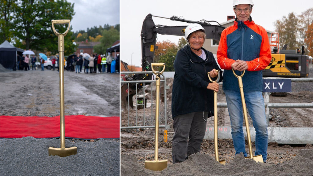 Nadja Stahlin och Arne Svensson, blivande boende i KHF BOrust var med på spadtaget.