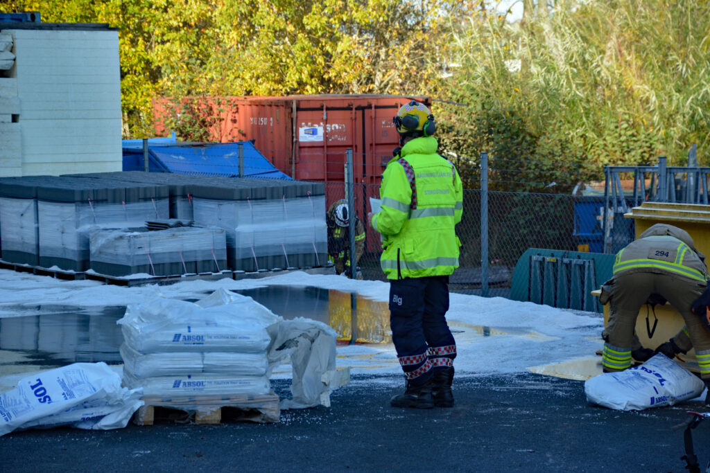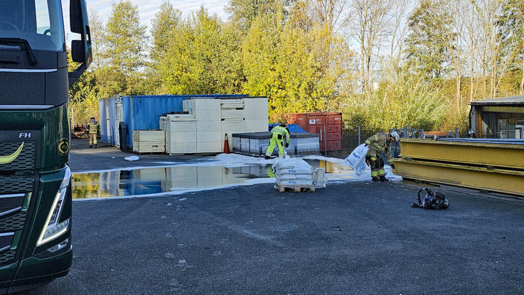 På måndagsförmiddagen larmades räddningstjänsten till ett företag på Munkeröds industriområde där en lastbil läckt ut en större mängd glycerin.