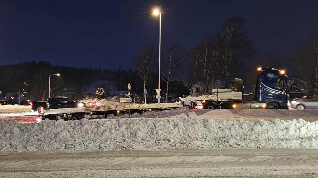 NYHETERsto rapporterade under onsdagen om en lastbil som gled av länsväg 160 i rondellen vid Almö Livs under eftermiddagen.
