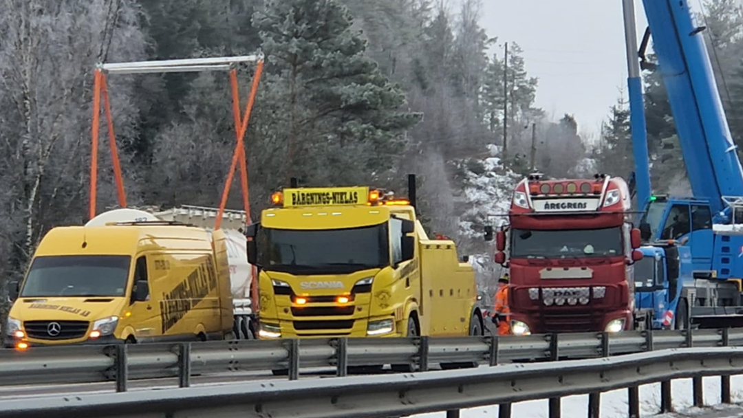 Bärgningsarbetet påbörjades vid klockan 10:30 och preliminär tid då bärgningsarbetet ska vara klart är satt till 16:00, men man var klara redan klockan 14:00 och trafiken släpptes då på.