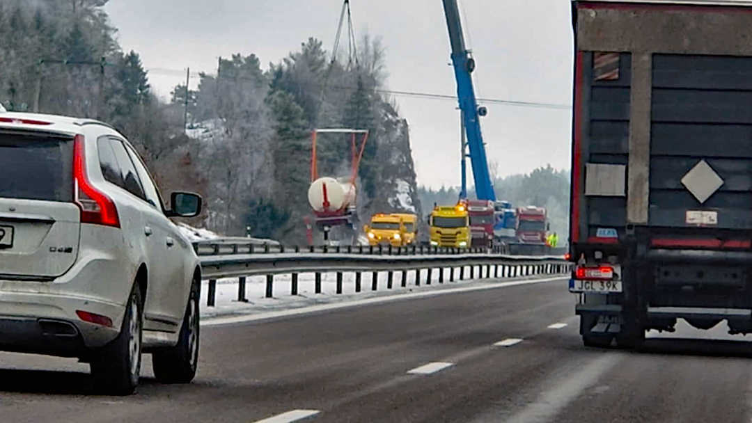 Under dagen kommer fordonet att bärgas och man behöver då stänga av E6 i norrgående mellan Rollsbomotet och Kodemotet.