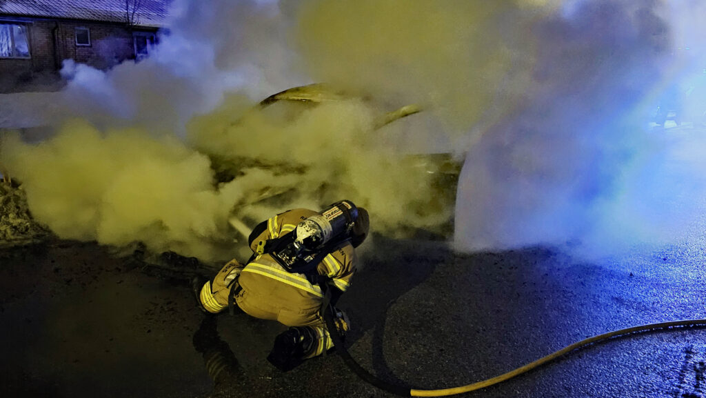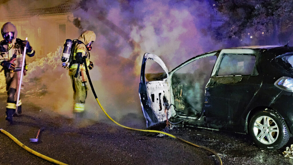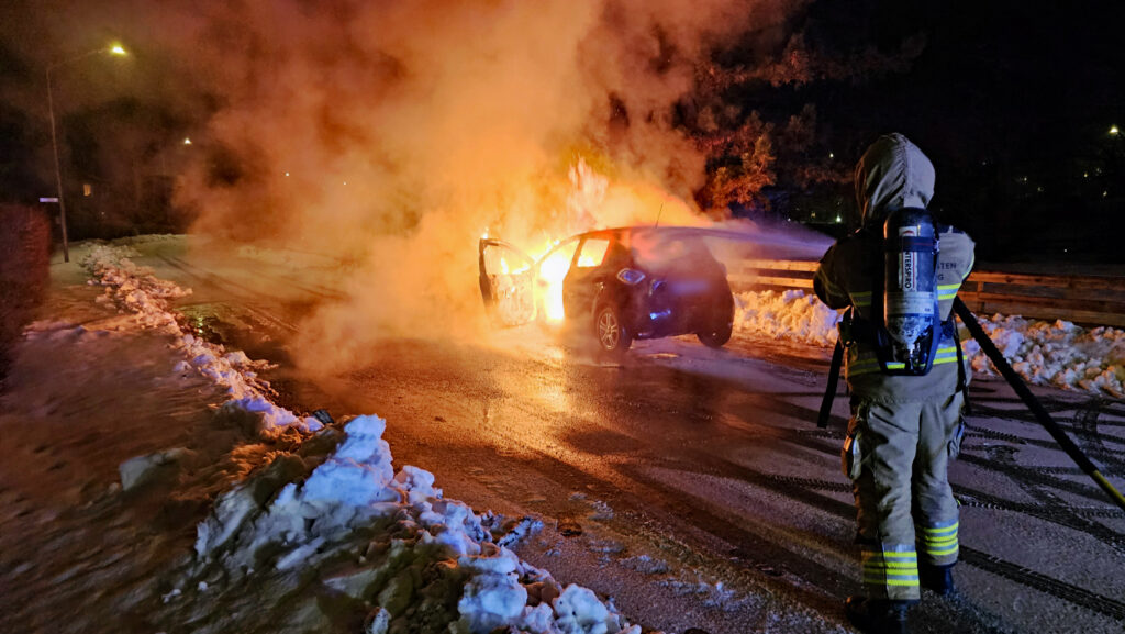 På söndagskvällen kom larm om en bil som börjat brinna under färd i centrala Stenungsund.