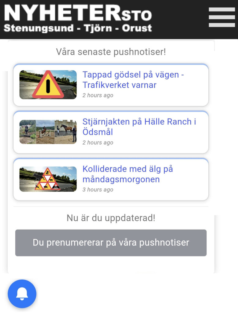 NYHETERsto använder sig av webpushnotiser. Genom att godkänna att ta emot aviseringar från oss i din webbläsare i din dator eller mobiltelefon så får du en notis när vi uppdaterar med en ny nyhet på hemsidan.