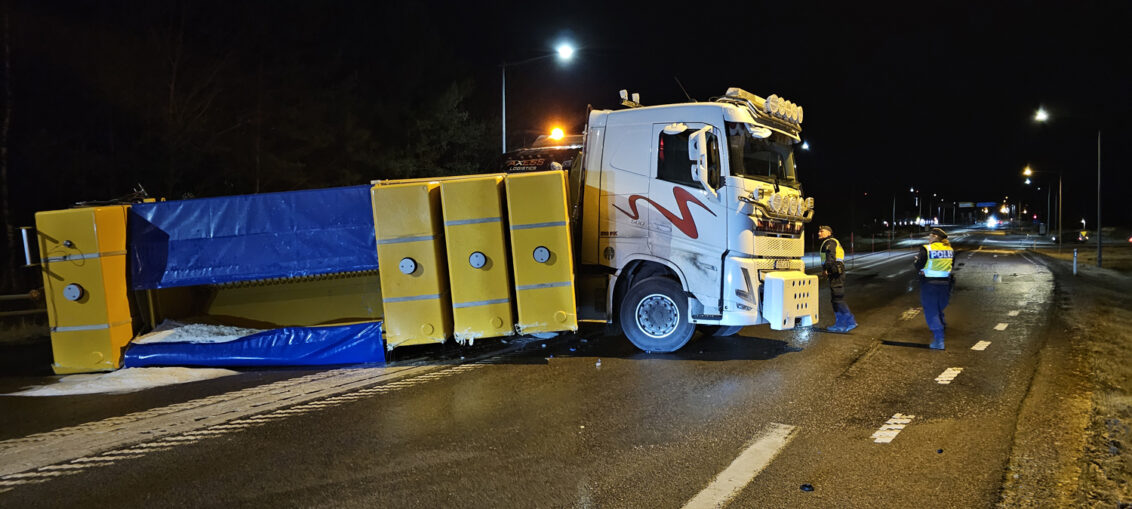 På måndagsmorgonen inträffade en trafikolycka mellan en saltbil och en biltransport mellan Kullens och Stora Högamotet. I samband med olyckan har saltbilens saltspridare och binge vält. Vägen var efter olyckan helt avstängd. 6999037
